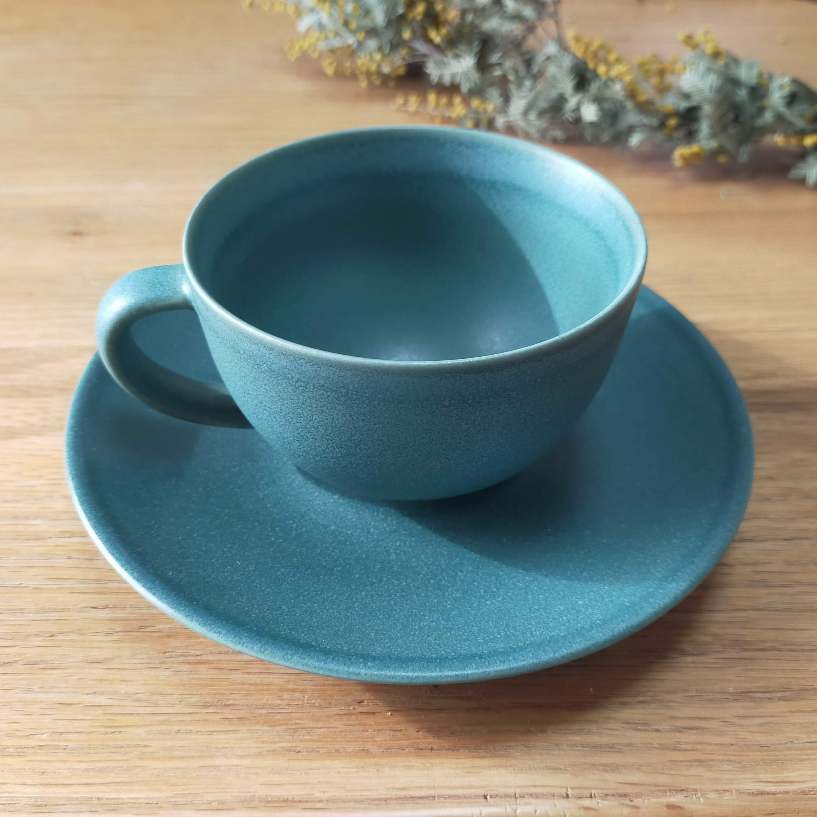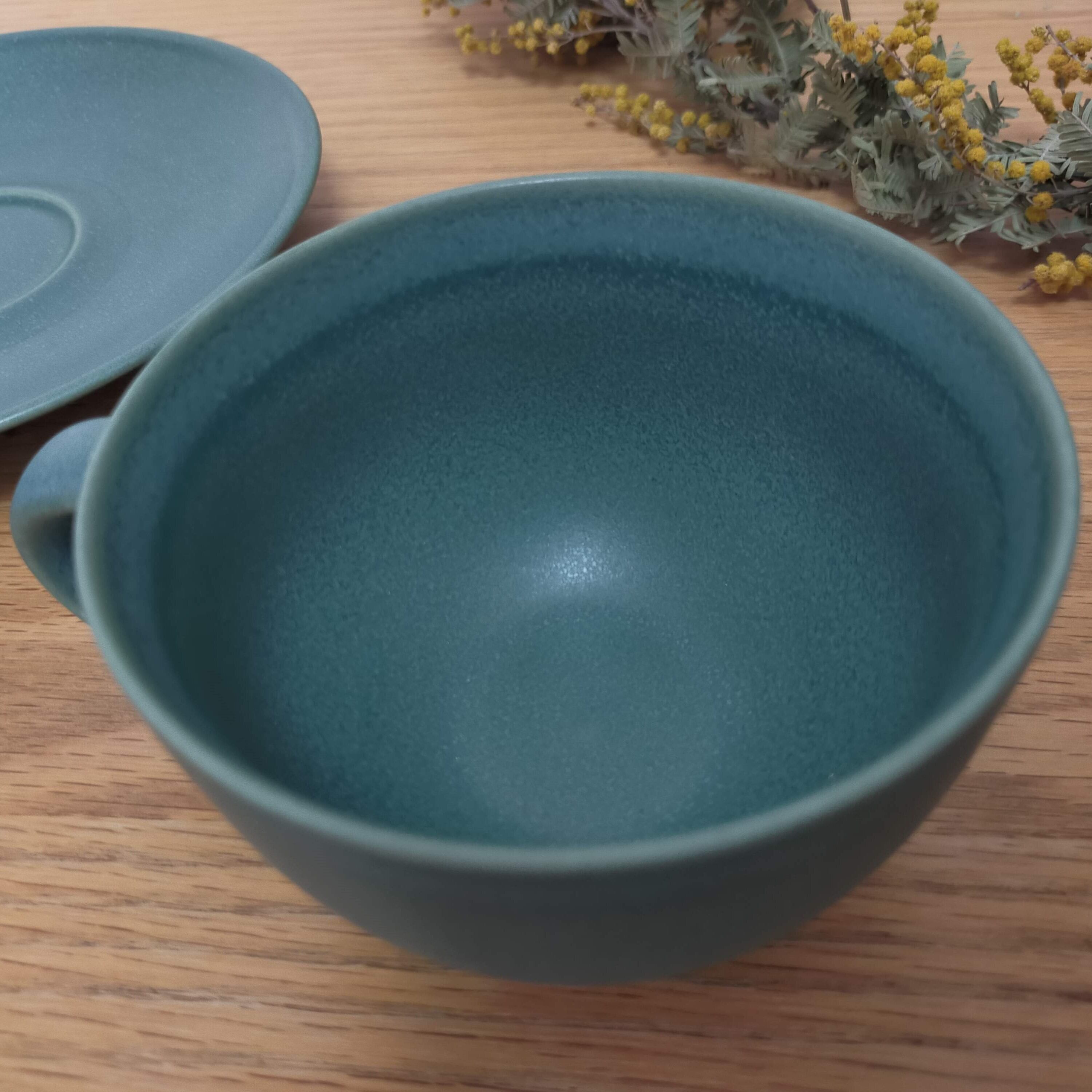 マットな質感の落ち着いたグリーンは、日本の食器にも合わせやすく、丸いフォルムは安定感があり、日常使いとしてもおすすめです。