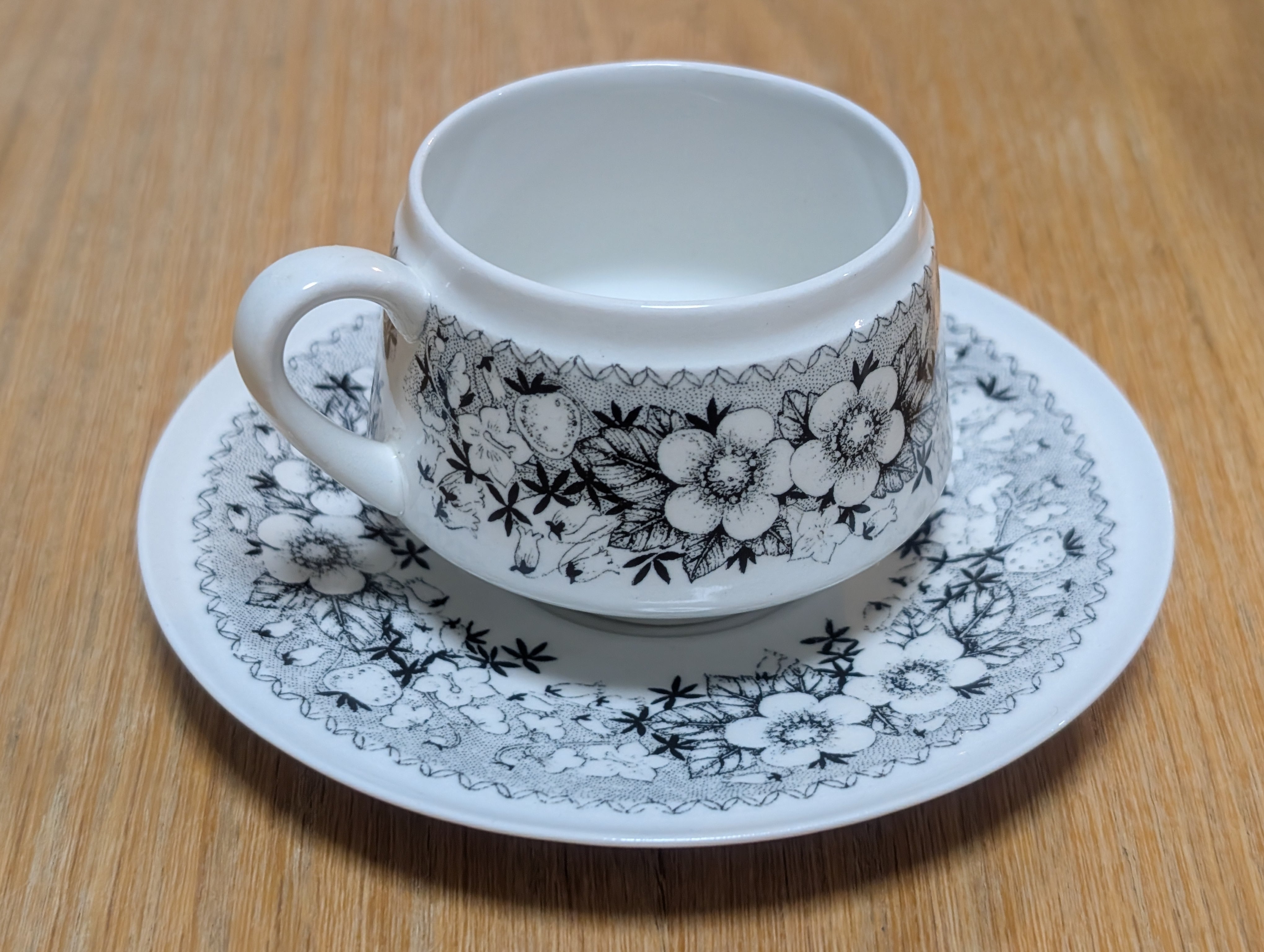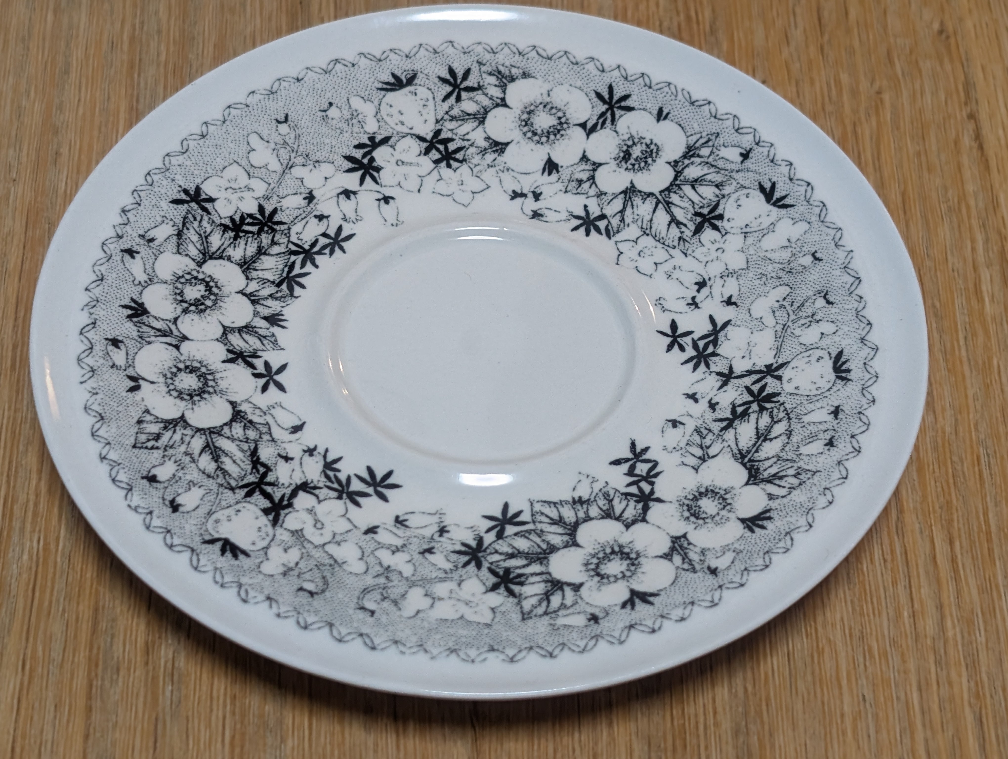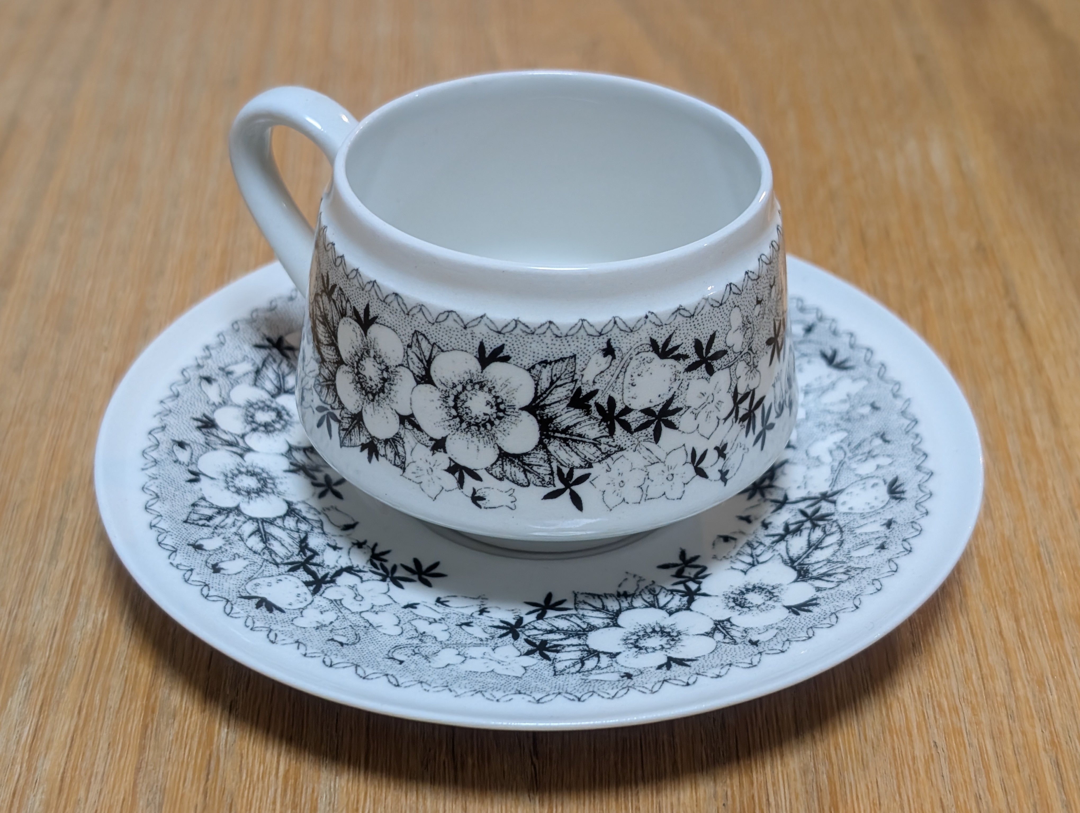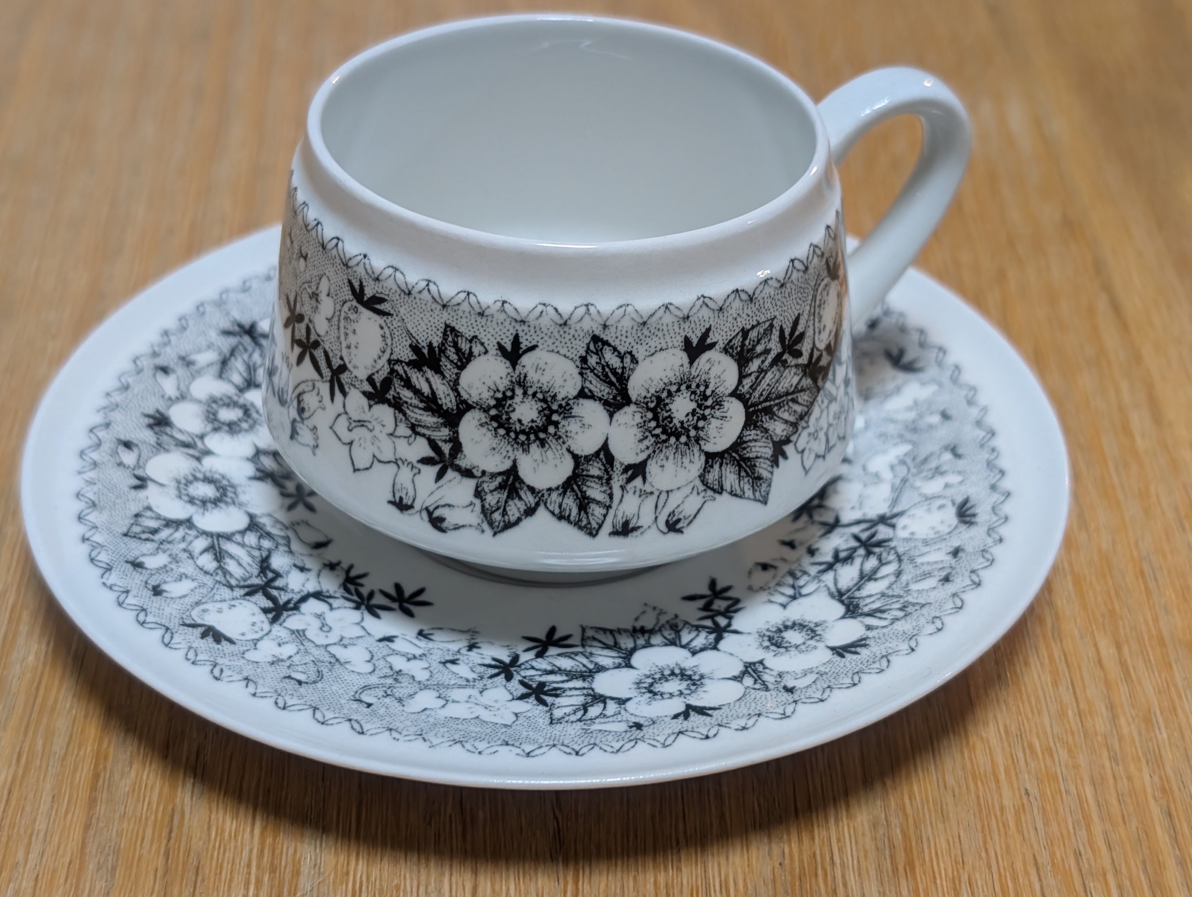 モノトーンで描かれた草花と苺の模様がとても可愛らしく、フィンランド国内でも人気が高く希少なシリーズです。